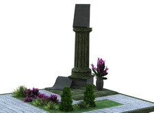 Макет места захоронения с максимальной концентрацией внимания на центральный постамент. Достаточно не обычное решение сделать центром композиции колону. Строгий и скорее даже классический вариант компоновки элементов комплекса.